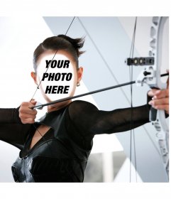 With this effect for photos you can put your face on the body of this girl pulling an arrow from the bow, and dressed in a black leather suit and look like a professional archer of film action. Have fun sharing with your friends this mounting with your face